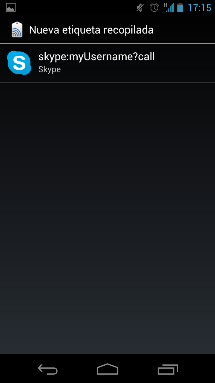 Se han hecho diferentes pruebas con las diferentes URIs disponibles en un Samsung Galaxy Nexus con Android 4.0 (Ice Cream Sandwich). Además también se han incluido otras URIs asociadas a aplicaciones como Facebook, Skype y GTalk. En la gran mayoría de ellas no se reconocía la URI, en otras se reconocía pero no se generaba ninguna acción. Este es el caso de “tel:” (llamada de teléfono), “sms:” (envío de SMS), “mailto:” (envío de correo electrónico), “file://” (navegación de archivos locales), “fb://” (URI de Facebook) y “skype:” (URI de Skype).