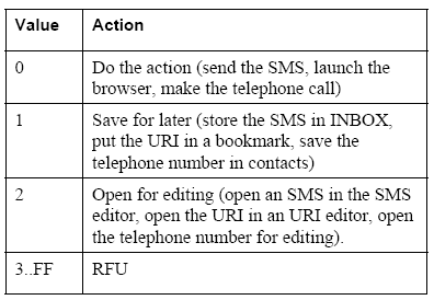 Aparte de incluir URIs simples en los tags se puede hacer uso del formato SmartPoster para incluir el mismo contenido pero añadiendo ciertos metadatos. Entre estos metadatos se incluye un campo action que indica al lector del SmartPoster si debe realizar la acción automáticamente, abrir para editar o salvar el contenido para un uso posterior. Afortunadamente, por lo menos en el caso del teléfono testeado, no se hace caso de este parámetro, ya que sería un claro descuido de seguridad: llamadas, SMS, Facebook, Skype, etc.