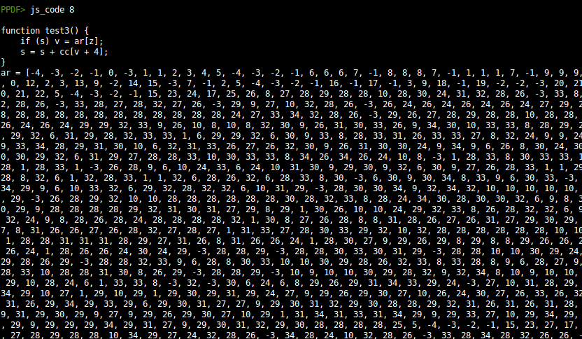 Extracción de Javascript de paquetes XDP: Cuando se encuentra código Javascript en un paquete XDP (en una plantilla XFA) normalmente está en formato XML, dentro de un elemento script. Hasta ahora al usar el comando js_code con un objeto de este tipo se obtenía todo el contenido, incluyendo elementos XML, pero ahora se extrae únicamente el código Javascript, sin añadir elementos innecesarios.